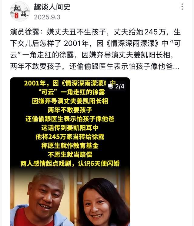 翻看过往关于徐露的评价,基本上都是与其婚姻生活有关,尤其是夫妻之间容貌的差距,围绕这一“差距”,各种流言蜚语可谓是十分荒唐。