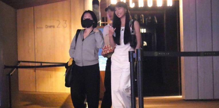 8点53分,电影散场,3人走出影厅。小S戴着黑色口罩,边走边与女儿聊天,而Lily比小S高10公分的高挑身材与一双超长美腿,配上极为仙气的脸蛋,让人经过她们母女身边都忍不住多看几眼。同行男子则跟在后方,双手抱着一袋物品,左手还勾着一袋。